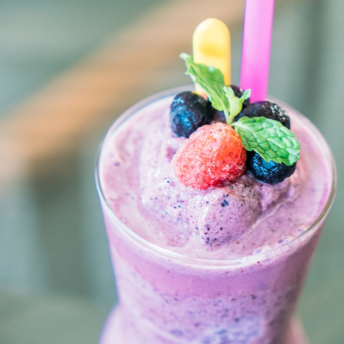 Frutas frescas mezcladas al momento. Refrescantes, naturales y llenos de color.